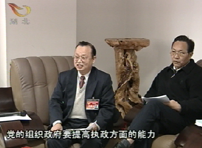 湖北省政協(xié)委員王敬璋 :" 黨的組織 政府 要提高執(zhí)政方面的能力 政協(xié)要提高參政議政能力 都要學(xué)習(xí)提高 是學(xué)習(xí)胡錦濤同志這一兩年來集中全黨智慧 提出的系列重大理論問題 比如說以人為本的問題 執(zhí)政為民的問題 科學(xué)發(fā)展的問題 以及和平崛起 和平發(fā)展問題 和建設(shè)和諧社會(huì)問題 "