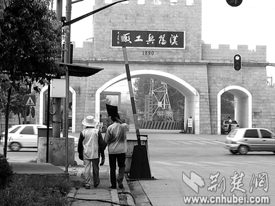 和南區(qū)的氣派牌坊廠門相比,漢陽鋼廠北區(qū)的大門異常簡(jiǎn)陋。