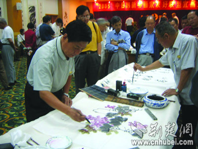 昨日,來自中、日、新、韓四國共26名書畫大家在游覽三峽后,紛紛揮毫潑墨,并與宜昌本土?xí)嫾疫M行了交流。據(jù)了解,此次四國書畫家友好聯(lián)盟大型筆會活動,是由宜昌市政協(xié)、宜昌點軍區(qū)政府和宜昌環(huán)中房地產(chǎn)開發(fā)有限公司、宜昌環(huán)中旅游開發(fā)有限公司共同舉辦的。荊楚網(wǎng)楚天都市報記者梅曉蕓攝