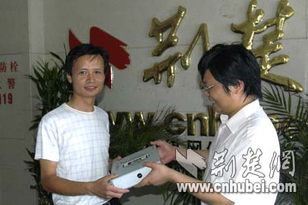 荊楚網(wǎng)副總編輯黃斌給武漢劉先生頒獎(jiǎng)