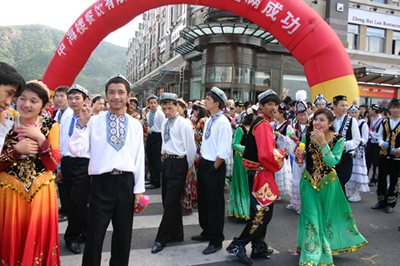 在遍布大連城100多個廣場上,形式多樣的民間文體活動,與狂歡節(jié)巡游隊伍遙相呼應。
