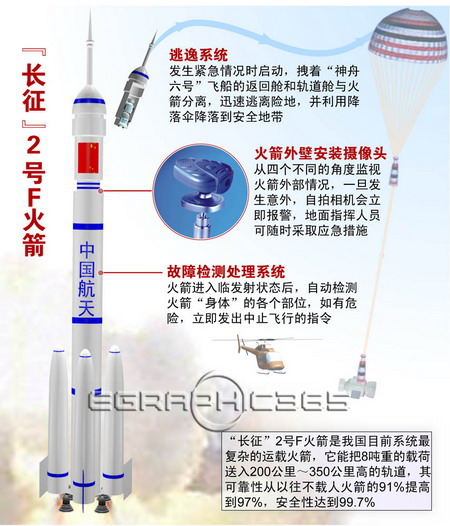 與“神五”發(fā)射不同的是,“神六”不僅是2名宇航員在太空飛行5天多的時間,而且為迎接他們的安全歸來,基地不僅選擇了內蒙古四王子旗的主著陸場,還啟用了距發(fā)射現場100多公里外的副著陸場。