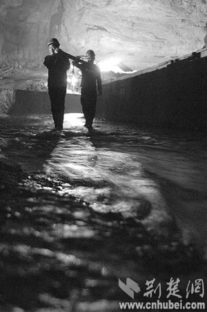 接下來,他們斥資120多萬元,掘了一個近300米的暗河橫洞,機械設備才能夠進入暗河溶洞。“這個暗河大廳夠大的吧!”馮連文帶記者一行走進已經(jīng)支護好了的溶洞。