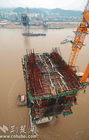 這是12號主塔墩正在進行混凝土澆筑的情景。日前,宜昌長江大橋已完成3個主塔墩的混凝土澆筑,這標志著大橋下部結(jié)構(gòu)工程已基本完成,轉(zhuǎn)入梁體施工階段。宜昌長江大橋是宜萬鐵路重點工程,該橋建設(shè)的順利進行,為全路段按期建成通車打下堅實基礎(chǔ)。