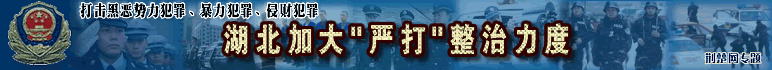 湖北今年嚴(yán)打目標(biāo)確定 省公安廳透露,去冬今春,我省社會(huì)治安大局穩(wěn)定,刑事發(fā)案率有所下降,今年將加大嚴(yán)打整治力度,重點(diǎn)打擊黑惡勢(shì)力犯罪、暴力犯罪、侵財(cái)犯罪……[詳細(xì)]::武漢警方突襲濱江明珠娛樂城 抓獲45名吸毒者 ::全省交警嚴(yán)查盜搶車 一假警車上查處9塊假車牌::湖北圈定106個(gè)治安整治重點(diǎn) 武漢市5個(gè)地段在列 武漢嚴(yán)打建筑工地惡勢(shì)力 [市政法委 各區(qū)舉報(bào)電話][把黑惡勢(shì)力趕出工地訪談熱線開通]::武漢市政法委副書記:廣泛發(fā)動(dòng)群眾鏟除沙霸石霸::漢陽鏟除沙石惡霸團(tuán)伙 行兇兩年作惡無數(shù)(圖)