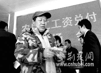 2日,湖南籍在鐘祥市境內(nèi)某高速公路務(wù)工的農(nóng)民工在鐘祥市勞動監(jiān)察大隊領(lǐng)到了他們的工資。近年來,鐘祥市勞動和社會保障局著重建立和完善農(nóng)民工權(quán)益保障制度,經(jīng)常在全市開展勞動用工專項檢查,加大對農(nóng)民工工資支付監(jiān)控力度,從源頭上有效地控制了拖欠農(nóng)民工工資問題。(通訊員趙云福鐘國慶攝)