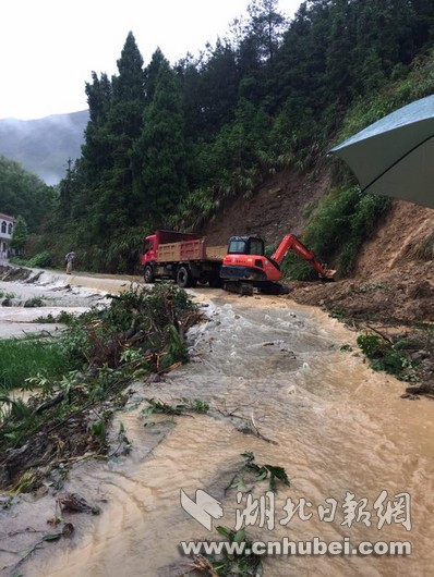 湖北日報網訊(全媒體記者張愛虎、通訊員汪淑琴、陳迪新)7月1日上午9點,崇陽縣港口鄉(xiāng)北山村五組發(fā)生山體滑坡,2000多立方米的泥沙樹木,從半山腰傾瀉而下,瞬間堵塞河道,沖向農田,十幾畝農田受損,幸無人員傷亡。駐北山村的殘聯(lián)農村工作隊正在該組查看汛情,見狀立刻疏散群眾。崇陽縣委縣政府高度重視,馬上轉移群眾,確保生命安全,省地質專家、鄉(xiāng)政府干部和設備馬不停蹄趕到現(xiàn)場搶險,疏散群眾、掛繩隔離,豎立地質警示標志,用挖機清理路面塌陷的石頭。