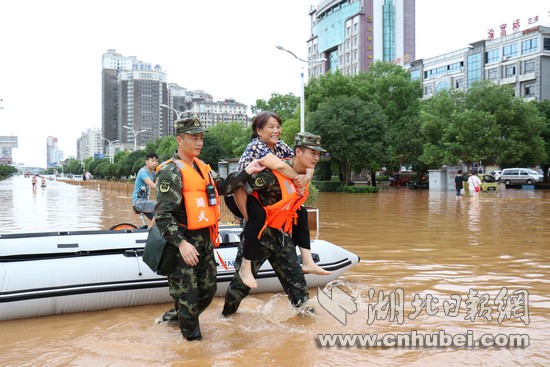 湖北日報網(wǎng)訊(通訊員何智利、何彥卿、記者江卉)8月11日20時至8月13日12時,咸寧地區(qū)普降大到暴雨,局部特大暴雨量達(dá)204.7毫米。強(qiáng)降雨導(dǎo)致城區(qū)咸寧大道、銀泉大道、玉泉街、書臺街等多條城市主干道嚴(yán)重積水,造成嚴(yán)重內(nèi)澇。8月13日13時許,武警咸寧支隊接到任務(wù)后,支隊長廖光明率50名官兵,出動車輛6臺、救援繩20根、皮劃艇3艘,轉(zhuǎn)移受災(zāi)群眾300余人,轉(zhuǎn)運(yùn)受損拋錨車輛20余臺,疏通城市主干道5條。截止13日18點,武警官兵還在一線救援。