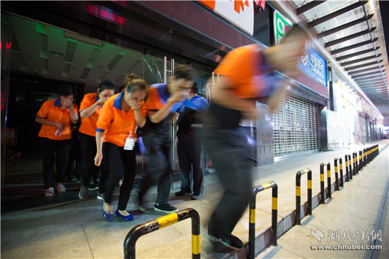 晚8時(shí),通城縣建筑體量最大的城市綜合體——三合中百購(gòu)物廣場(chǎng)內(nèi),燈火通明,熙熙攘攘。忽然,警鈴大作。廣場(chǎng)因電線(xiàn)短路發(fā)生“火災(zāi)”,火勢(shì)迅速蔓延,大量人員被困。警情就是命令。廣場(chǎng)內(nèi)4個(gè)微型消防站立即按照預(yù)案,疏散廣場(chǎng)內(nèi)部人員,并啟動(dòng)固定消防設(shè)施,阻止火勢(shì)蔓延。