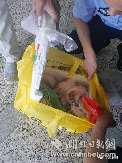 7日上午,崇陽縣天城鎮(zhèn)居民李師傅在該鎮(zhèn)下津大道路邊撿到一個(gè)白色包裹,送到崇陽縣公安局經(jīng)濟(jì)開發(fā)區(qū)派出所。為了找到包裹的主人,所長(zhǎng)童鵬飛打開了包裹尋找線索,里面有豬肉、干筍等物品,還有一封信。