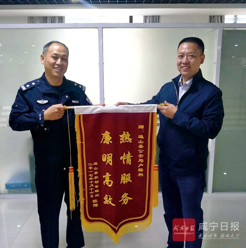 同日,通山縣城市福利院制作了一面錦旗送到戶籍民警手上,感謝公安戶籍民警熱情高效的為民、利民服務(wù)。