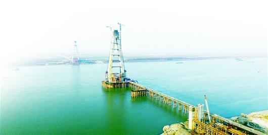 圖為:建設(shè)中的嘉魚(yú)長(zhǎng)江大橋