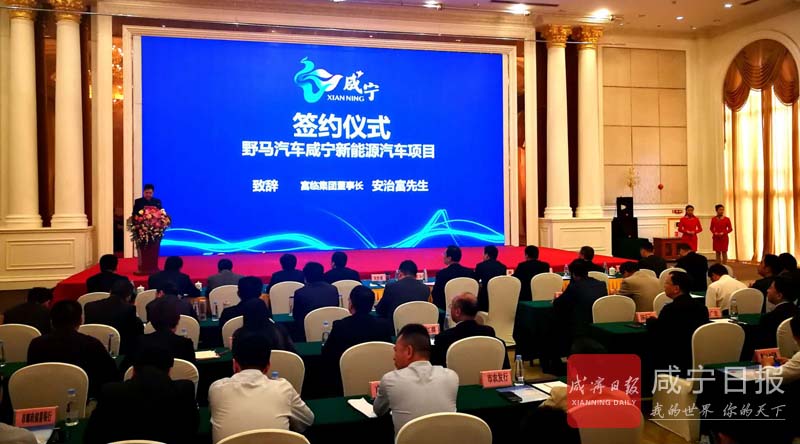 4月12日,咸寧市舉行野馬汽車咸寧新能源汽車項(xiàng)目簽約儀式。市委書記、市人大常委會(huì)主任丁小強(qiáng),富臨集團(tuán)董事長(zhǎng)安治富,市委副書記、市長(zhǎng)王遠(yuǎn)鶴,富臨集團(tuán)副總經(jīng)理藤明波,四川野馬汽車股份有限公司總經(jīng)理譚建偉見證簽約。