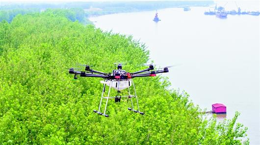 湖北日報訊 6月12日,在嘉魚縣長江干堤陸溪段,無人機(jī)在防浪林上空噴灑低毒無殘留農(nóng)藥,防治病蟲害。近期,嘉魚段長江防浪林出現(xiàn)了蟲卵和幼蟲,嘉魚縣林業(yè)局迅速進(jìn)行綜合防治,全面維護(hù)從陸溪至簰洲灣109公里長江沿線及洲灘6萬余畝楊樹林。