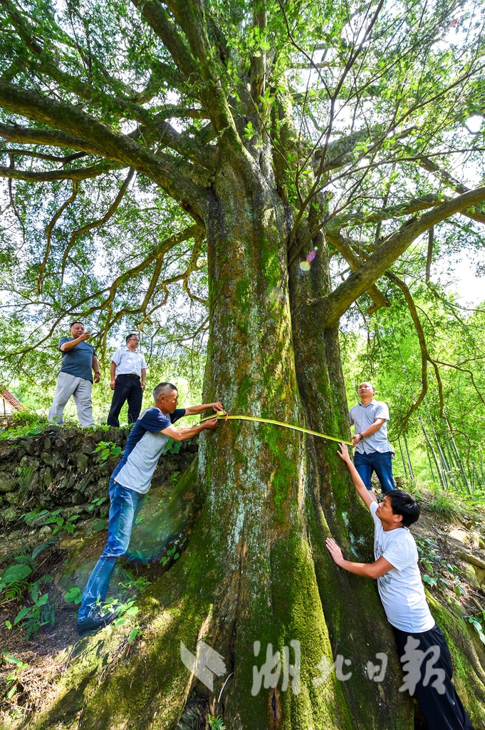 這棵雌性香榧樹胸圍4.9米。