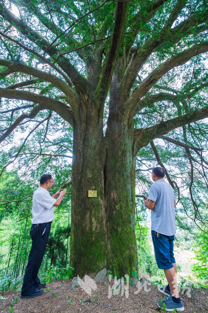 湖北日?qǐng)?bào)訊(記者 陳勇 通訊員汪佳、黎志遠(yuǎn))7月16日,在崇陽(yáng)縣港口鄉(xiāng)大東港村,兩棵古香榧樹歷經(jīng)千年仍枝繁葉茂、碩果累累,令游客驚嘆不已。這棵雌性香榧樹高25米,樹冠面積約有650平方米,胸圍4.9米,估測(cè)樹齡在980年至1200年之間。香榧,紅豆杉科,中國(guó)原產(chǎn)樹種,是世界上稀有的經(jīng)濟(jì)樹種。崇陽(yáng)縣林業(yè)部門在幕阜山南坡發(fā)現(xiàn)這兩株古香榧樹,認(rèn)為有很高的科研和經(jīng)濟(jì)價(jià)值,列入一級(jí)保護(hù)的古樹名單。