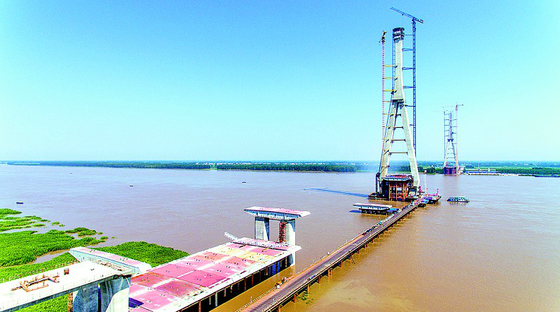 湖北日?qǐng)?bào)訊 (記者江萌、通訊員周漓)7月16日,嘉魚長(zhǎng)江公路大橋主塔成功封頂(如圖),即將進(jìn)入主橋鋼箱梁安裝、橋面施工等上部構(gòu)造施工。嘉魚長(zhǎng)江公路大橋連接洪湖與嘉魚,是武漢城市圈外環(huán)高速的重要控制性工程,大橋主塔封頂將加快外環(huán)高速全面合龍畫圓。
