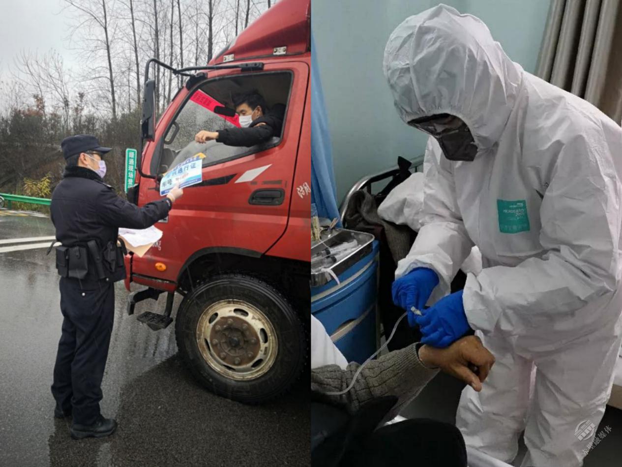 除夕至今,楊光吃住在單位,跑遍轄區(qū)角角落落,三個卡點的排班表和巡邏值班表上寫滿了他的名字。王姣抽調(diào)到隔離四區(qū),給病患打針治療、記錄生命體征、照料起居生活。