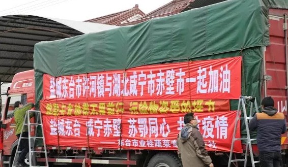“同志,您好,我們是江蘇鹽城東臺的,我們拖運(yùn)來了捐贈蔬菜,請問……”