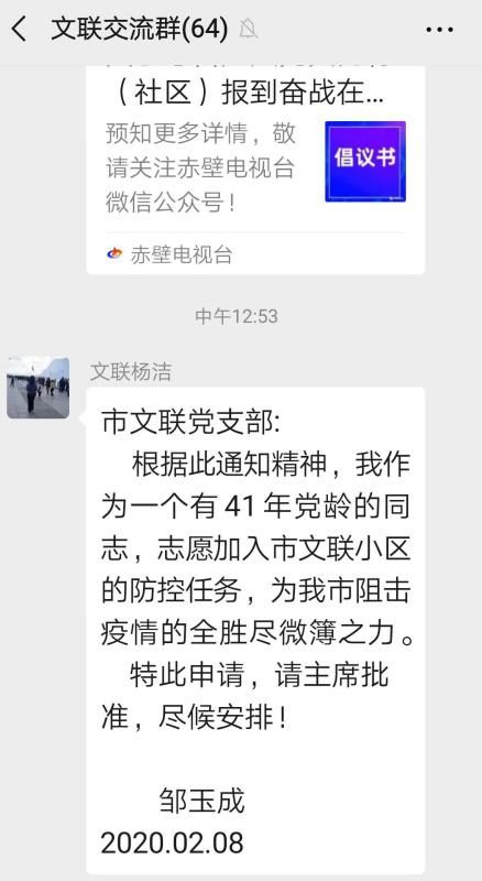 2月8日晚,他從媒體上看到,赤壁市委組織部發(fā)出倡議書,號(hào)召廣大黨員向村(社區(qū))報(bào)到,奮戰(zhàn)防疫一線。從字里行間,他感受到抗疫形勢的嚴(yán)峻,再次寫下請戰(zhàn)書。