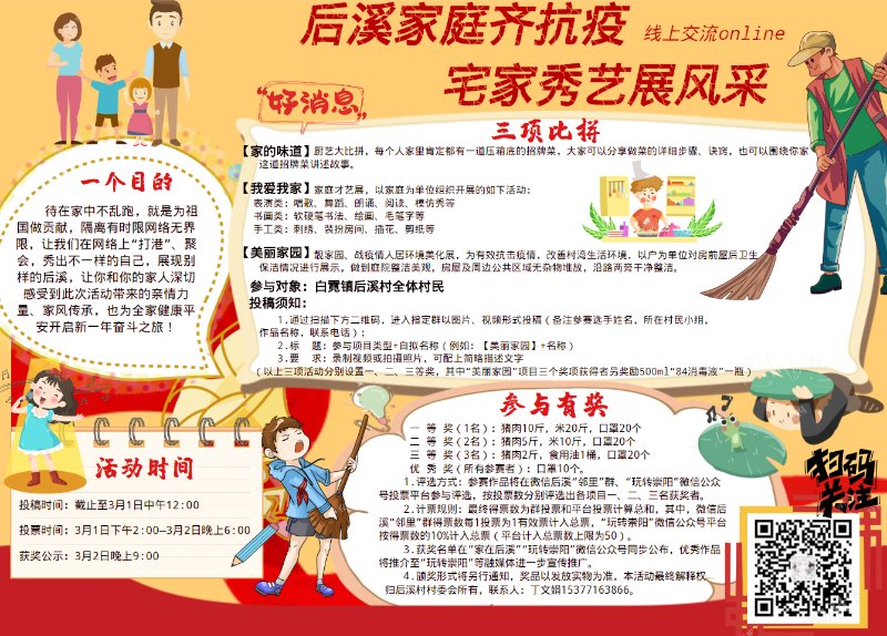因?yàn)?,該村正在舉辦“后溪家庭齊抗疫 宅家秀藝展風(fēng)采”活動!