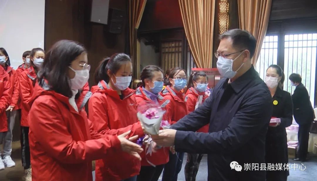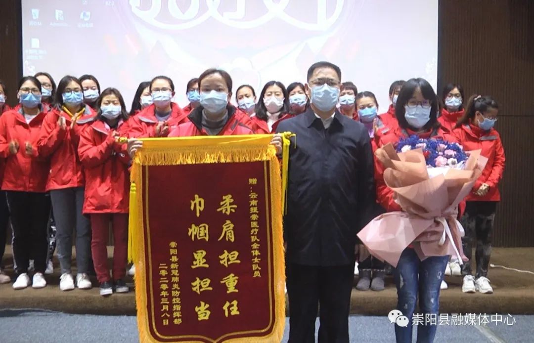 活動中,縣委副書記、縣長鄭俊華向云南援崇醫(yī)療隊贈授“柔肩擔(dān)重任·巾幗顯擔(dān)當(dāng)”感謝錦旗,縣委副書記、縣委政法委書記程冰野為崇陽縣人民醫(yī)院授予“巾幗建功集體”榮譽(yù)錦旗,同時,向每一位云南援崇醫(yī)療隊女醫(yī)護(hù)人員和奮戰(zhàn)在戰(zhàn)“疫”最前線的女醫(yī)生、女護(hù)士代表送上了鮮花和節(jié)日禮物。