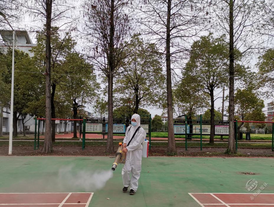 消殺工作并不輕松,首先是穿戴的防疫消殺噴霧器,裝滿藥水后有60多斤,背著它一干就是幾個(gè)小時(shí),一輪工作下來(lái),往往大汗淋漓,腰酸背痛。其次就是消毒水的氣味,也是一種考驗(yàn)。剛開(kāi)始消殺的時(shí)候,梅明清適應(yīng)不了消毒藥水的氣味,工作一天后到了晚上都會(huì)感覺(jué)到惡心反胃。但為了做好工作,梅明清努力克服,一直堅(jiān)持到自己慢慢適應(yīng)。