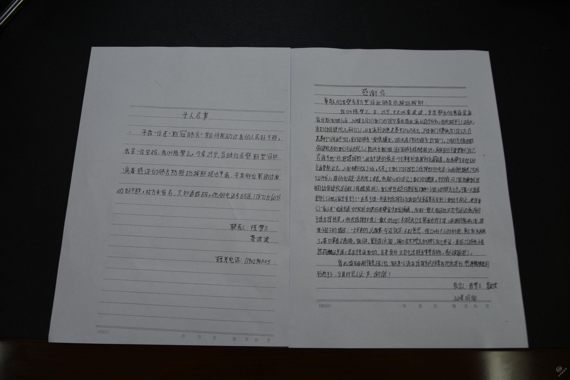 夫妻二人一直對這位胡姓同志十分感激,2月18日,陳夢云給市疫情防控指揮部寫了一封感謝信,同時(shí)希望他們能幫忙找到那位胡姓同志以便表示感謝。經(jīng)過一個(gè)半月的尋找,4月6日,夫妻二人終于得知——胡明浩,市衛(wèi)健局人事股科員,于是給其所在市新冠肺炎疫情防控指揮部送上錦旗。