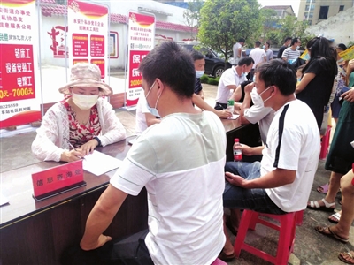 了解這一情況后,社區(qū)黨員干部立刻與咸安區(qū)永安個(gè)私協(xié)聯(lián)系,通過(guò)協(xié)會(huì)牽線搭橋,組織開(kāi)展本場(chǎng)招聘會(huì)。社區(qū)居民鄭小紅原本在廣東一家電子廠打工,受疫情影響,她今年沒(méi)有外出返崗。想著孩子即將開(kāi)學(xué)復(fù)課,鄭小紅當(dāng)天來(lái)到現(xiàn)場(chǎng)求職,很快,她與湖北成奧汽車(chē)服務(wù)有限公司達(dá)成初步就業(yè)意向?!耙?yàn)橐咔榈脑蛞恢贝诩依?,就靠老公一個(gè)人賺錢(qián)也不容易,心里挺著急的,就急需找到一份滿意的工作。今天恰恰有這么好的機(jī)會(huì)達(dá)成我的心愿了。薪資待遇跟外面差不多,還是比較滿意的?!焙袜嵭〖t一樣開(kāi)心的還有居民周霞,周霞此前也在外地打工,通過(guò)這次招聘會(huì),周霞在家門(mén)口找到了一份新的工作,5日她就到咸安區(qū)萬(wàn)家興燈籠廠上班了。