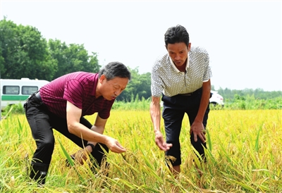 排澇搶收減損失 14日,赤壁農業(yè)農村局產業(yè)股股長錢直榮和農藝師金剛來到車埠鎮(zhèn)梅湖村指導村民搶收搶種??吹睫r技人員下到田中,周邊農戶都圍攏過來,期待他們的技術指導。