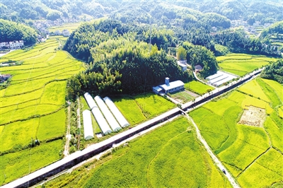雞打工鴨耘禾 荒田育出有機稻 車上高峰村,眼前村舍儼然,禾苗翠綠,成群的鴨子嬉戲在禾苗間。