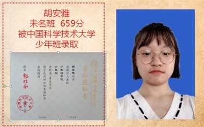 8月12日,從省招辦傳來喜訊:來自全國各地的129名“天才少年”來合肥參加中國科學(xué)技術(shù)大學(xué)“少年班”復(fù)試的角逐,共計(jì)錄取48名考生。湖北僅錄4人,咸高獨(dú)占3人!余亦可、陳龍、胡安雅同學(xué)經(jīng)過嚴(yán)格挑選,脫穎而出,被中科大“少年班”錄?。菚阃瑢W(xué)被中科大“少創(chuàng)班”錄??!郭雷、劉瑞同學(xué)被空軍航空大學(xué)錄??!周子吉吉、饒冶、朱紫珩、趙子廉、施熠被清華大學(xué)、上海交大、復(fù)旦大學(xué)、浙江大學(xué)錄取。