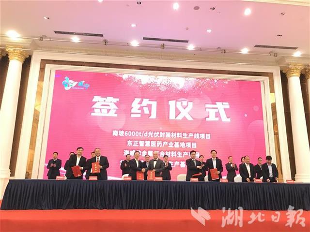 本次集中簽約項目中,咸寧南玻玻璃有限公司擬投資50億元,其中一期投資10億元,新建設光伏封裝材料生產(chǎn)線;隆華科技集團旗下的咸寧海威復合材料制品有限公司是新型高分子復合材料領域的隱形冠軍,本次計劃投資10億元;武漢盛勢魔方科技有限責任公司擁有自主研發(fā)的核心技術,投資1億元建智能傳感器研發(fā)及生產(chǎn)基地;武漢和信光通信科技有限公司投資2億元,建設光通訊及磁性器件生產(chǎn)基地等。