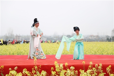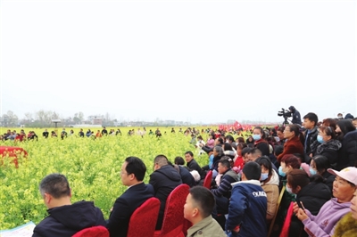 精彩的文藝演出、極具地方風(fēng)情的民俗表演和國家非物質(zhì)文化遺產(chǎn)提琴戲演唱,與花海交相輝映,為前來觀賞的人們帶來了絕美的視覺盛宴。開幕活動結(jié)束后,開始游玩賞景,游客們或全家出動,或情侶相攜,或友人相伴,邊感嘆油菜花的美,邊呼朋引伴一起拍照留念,人花相映襯,美不勝收。除了賞花,大家還紛紛品嘗特色美食,購買當(dāng)?shù)靥厣r(nóng)產(chǎn)品。