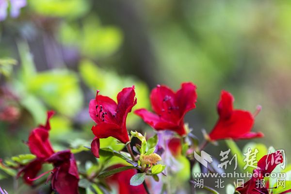 荊楚網(wǎng)(湖北日?qǐng)?bào)網(wǎng))訊(通訊員陳長(zhǎng)麗)最美人間四月天,“花中西施”杜鵑接力登場(chǎng)成為春花主力。在武漢植物園,5萬(wàn)株杜鵑恣意開(kāi)放,園內(nèi)各處杜鵑簇?fù)碇︻^,織錦堆繡,漫山紅遍,美不勝收。園區(qū)重新修繕提升了杜鵑園霧噴景觀,云霧繚繞中,萬(wàn)千杜鵑燦若云霞若隱若現(xiàn),宛若人間仙境。