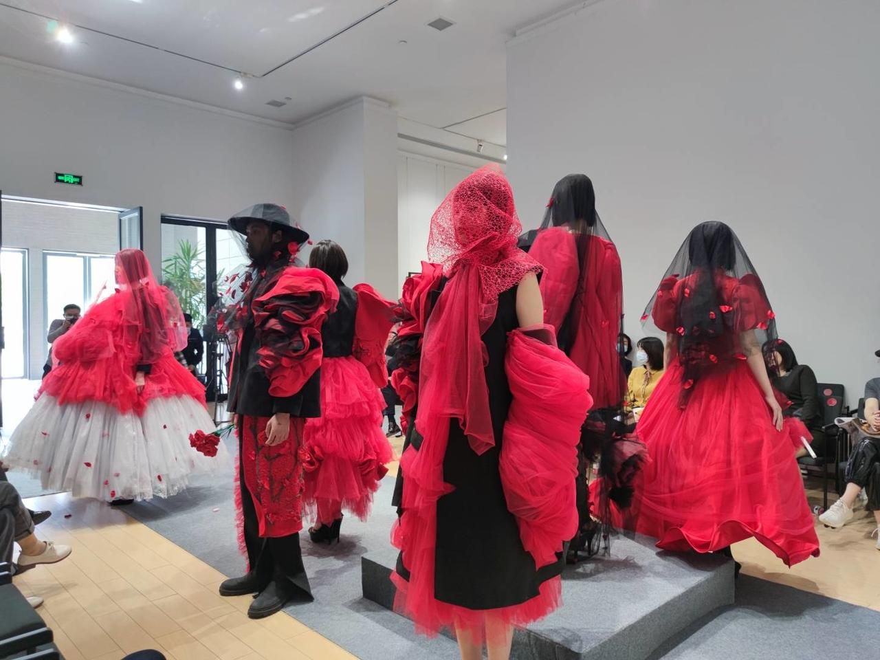 服裝動(dòng)態(tài)秀展演結(jié)束后,江漢大學(xué)2021年應(yīng)屆畢業(yè)生代表給服裝系專業(yè)老師舉行了獻(xiàn)花儀式?;顒?dòng)現(xiàn)場(chǎng)來(lái)自社會(huì)各界、兄弟院校、各大企業(yè)及江漢大學(xué)師生代表300余人參加了開幕式展演活動(dòng)。
