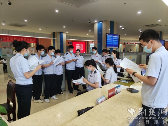 圖為稅務(wù)窗口人員利用午休時間開展“楚稅通”APP專項業(yè)務(wù)培訓(xùn)。(通訊員 供圖)