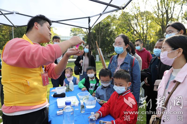 圓溜溜的東紅獼猴桃、“復(fù)活”的千年古蓮子、珍稀瀕危植物書簽生動(dòng)地呈現(xiàn)出植物園的科研成果,亮閃閃的巖礦化石、栩栩如生的蝴蝶標(biāo)本、精巧的建筑模型令人目不暇接,智能垃圾桶、會(huì)投籃的機(jī)器人、炫酷的無(wú)人機(jī)讓人感受到智能科技的魅力……植物園的大草坪上,武漢本地的17家科教機(jī)構(gòu),從行業(yè)角度出發(fā)展現(xiàn)科技水平,為公眾奉上了一場(chǎng)科學(xué)盛宴。
