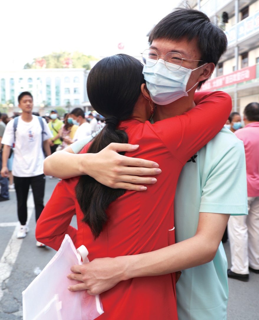 考場(chǎng)里,是對(duì)考生12年勤學(xué)苦讀的檢驗(yàn);考場(chǎng)外,是親人們的牽掛與期盼。臨進(jìn)考場(chǎng)前,走出考場(chǎng)后,一個(gè)緊緊的擁抱、一個(gè)自信的手勢(shì)、一個(gè)會(huì)心的微笑,舉手投足間都是滿滿的愛(ài)。文、圖/記者 張啟國(guó) 劉成臣