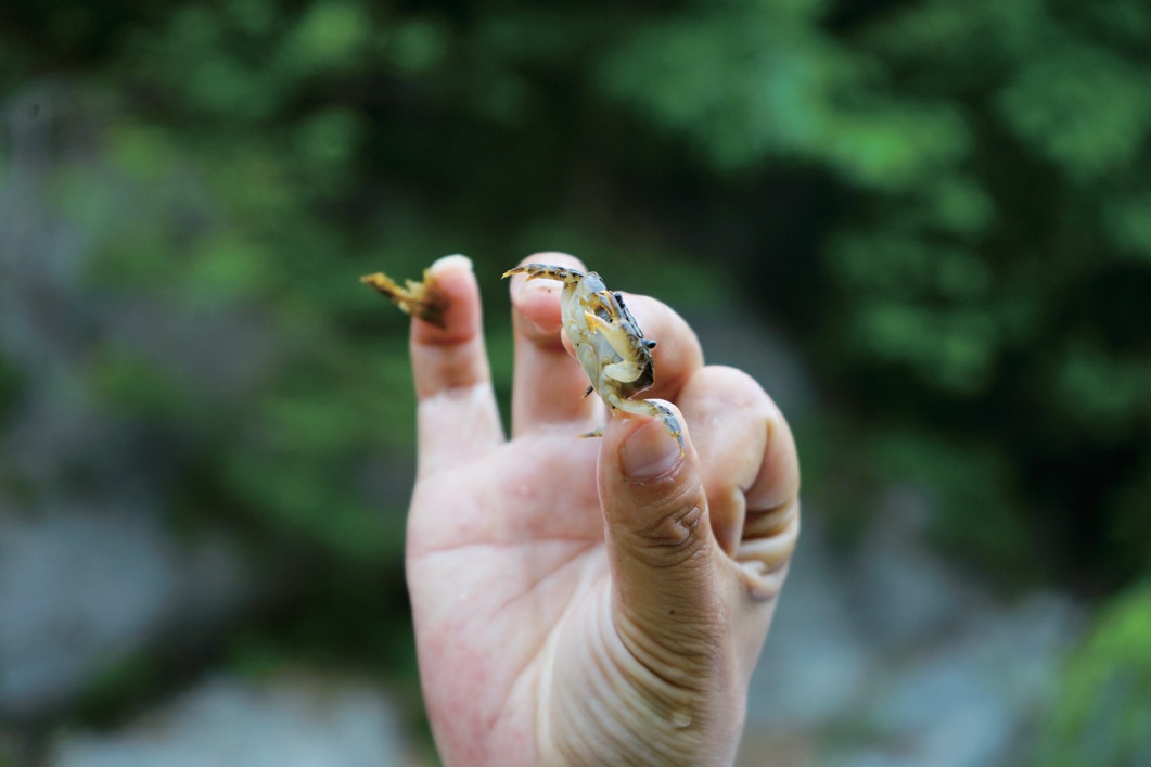 清澈的河中藏有不知名的野魚(yú)、小蝦小蟹,野趣天成。