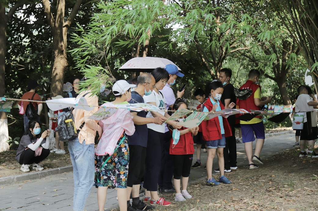 小記者及家長(zhǎng)參觀恐龍地質(zhì)遺跡科普獲獎(jiǎng)繪畫作品。