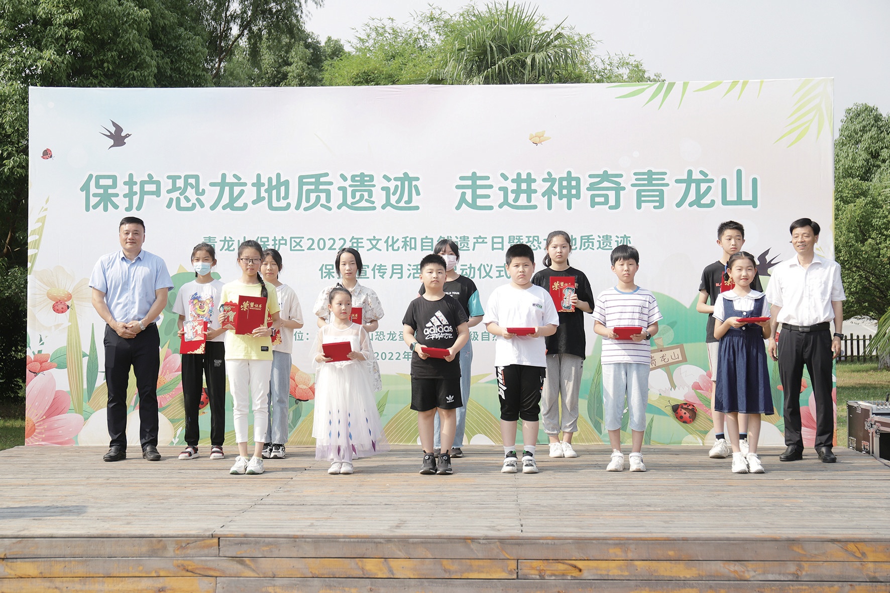 湖北青龍山恐龍蛋化石群國(guó)家級(jí)自然保護(hù)區(qū)管理局局長(zhǎng)、黨組書記姚天國(guó)宣布活動(dòng)啟動(dòng)。青龍山管理局副局長(zhǎng)、黨組成員梁建明致歡迎辭,他說(shuō),希望通過(guò)此次活動(dòng),讓孩子們通過(guò)走進(jìn)青龍山恐龍地質(zhì)遺跡,感受遠(yuǎn)古文明脈搏。青龍山管理局副局長(zhǎng)、黨組成員田強(qiáng)宣讀了在“保護(hù)恐龍地質(zhì)遺跡爭(zhēng)做地球小衛(wèi)士”十堰市恐龍地質(zhì)遺跡科普作品征集活動(dòng)獲獎(jiǎng)名單。姚天國(guó)、梁建明、田強(qiáng)和十堰日?qǐng)?bào)社黨委委員、副總編輯陳立波一一為獲獎(jiǎng)?wù)哳C獎(jiǎng)。