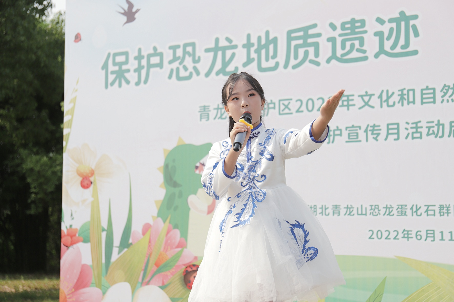 “讓我們行動(dòng)起來(lái),爭(zhēng)做恐龍地質(zhì)遺跡保護(hù)的小衛(wèi)士,像保護(hù)眼晴、愛惜生命一樣保護(hù)好恐龍地質(zhì)遺跡,不偷挖、盜挖恐龍蛋,不交易、買賣恐龍蛋……”小記者代表李華博、李坤陽(yáng)現(xiàn)場(chǎng)發(fā)出保護(hù)文化和自然遺產(chǎn)倡議,希望現(xiàn)場(chǎng)的小記者們行動(dòng)起來(lái),爭(zhēng)做恐龍地質(zhì)遺跡保護(hù)的小衛(wèi)士、恐龍地質(zhì)遺跡保護(hù)的宣傳員和現(xiàn)代科學(xué)知識(shí)的傳播者,傳播珍愛地球,保護(hù)環(huán)境的理念,自覺踐行“綠水青山就是金山銀山”的發(fā)展理念,共建人與自然和譜共生的美麗家園。