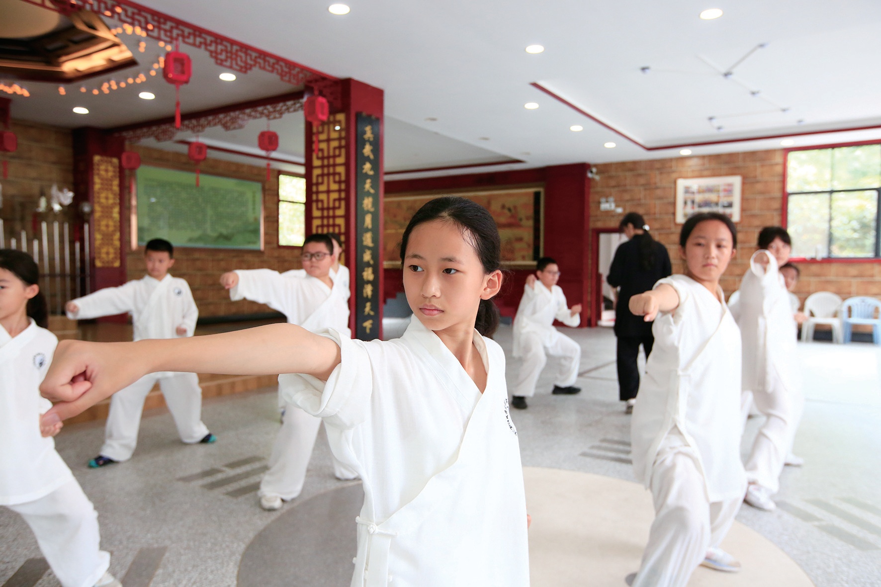 進(jìn)入暑假,武當(dāng)山各家武館開設(shè)的“功夫夏令營(yíng)”,迎來(lái)全國(guó)各地的孩子們習(xí)練武當(dāng)武術(shù)。他們多半在這里住半個(gè)月到一個(gè)月,除了習(xí)練武當(dāng)武術(shù),還學(xué)習(xí)書法、道家禮儀等,度過(guò)一個(gè)“不平凡的夏天”。