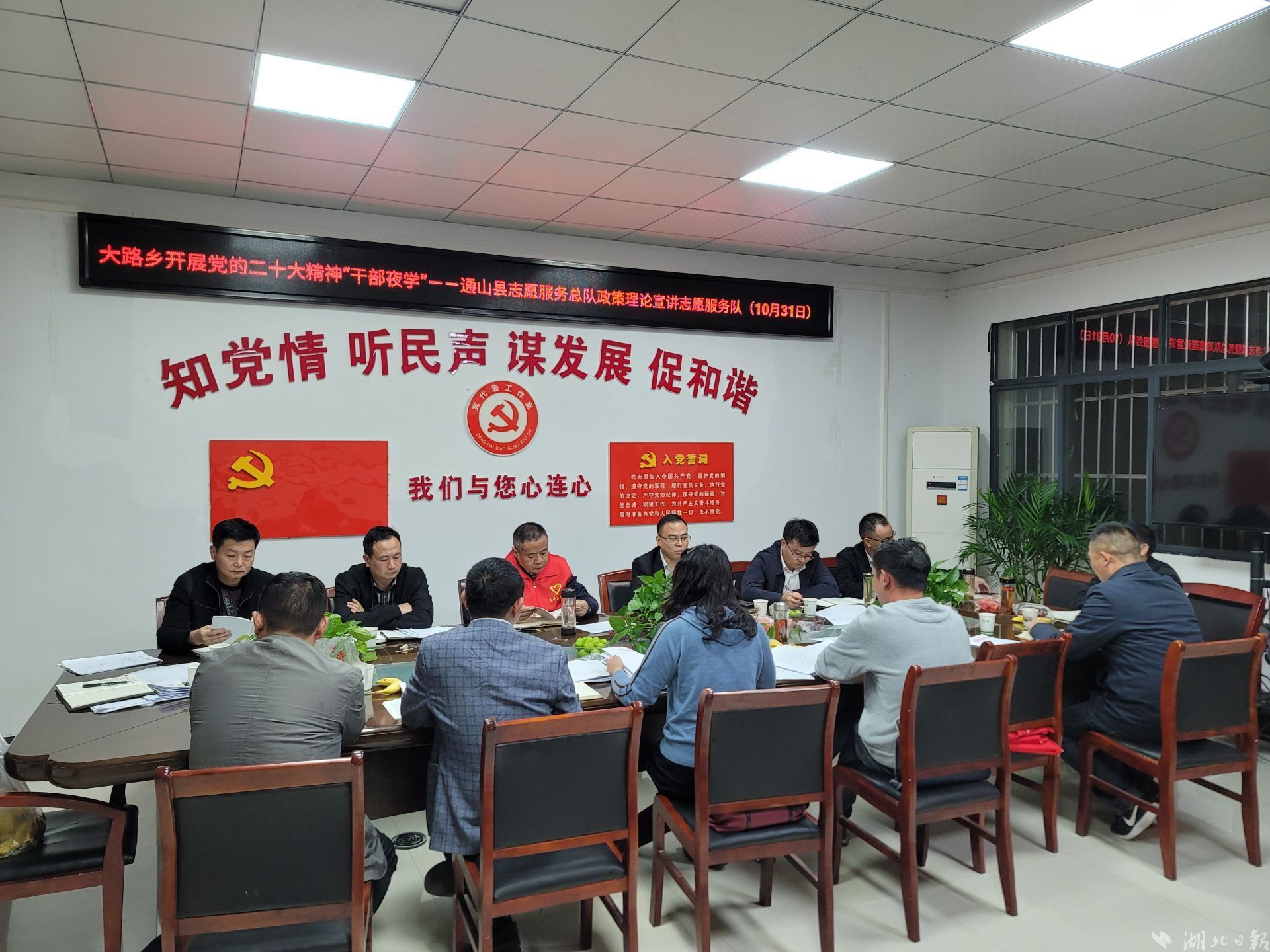 10月27日晚,通山縣委理論學(xué)習(xí)中心組率先在全縣開設(shè)“夜學(xué)班”,拉開了全縣黨員干部“夜學(xué)”帷幕。全縣各部門、各鄉(xiāng)鎮(zhèn)、各村灣相繼加入,以定時(shí)、定點(diǎn)、定主題機(jī)制,掀起“夜學(xué)”熱潮。