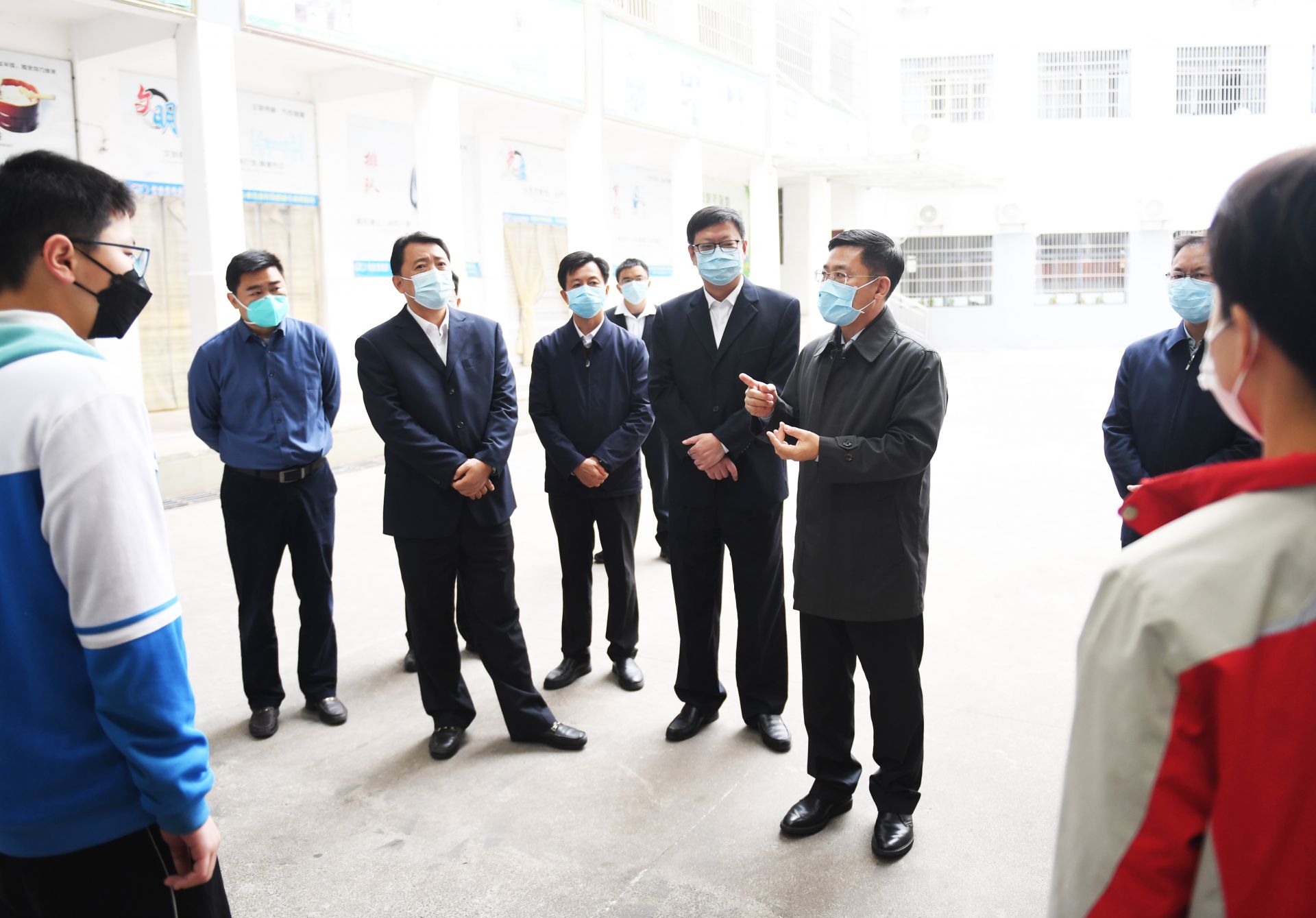 因前期篩查發(fā)現(xiàn)有陽(yáng)性病例活動(dòng)軌跡,崇陽(yáng)縣眾望高中實(shí)行靜默管理,部分師生在校園內(nèi)接受健康監(jiān)測(cè),他們的身體情況、生活保障和心理狀況牽掛著市領(lǐng)導(dǎo)的心。孟祥偉、楊軍來(lái)到學(xué)生宿舍樓下,在采取戴口罩、間隔一米等必要防護(hù)措施后,和被監(jiān)測(cè)學(xué)生、老師親切交流,詳細(xì)了解監(jiān)測(cè)措施落實(shí)、日常飲食及營(yíng)養(yǎng)保障、心理疏導(dǎo)等情況。