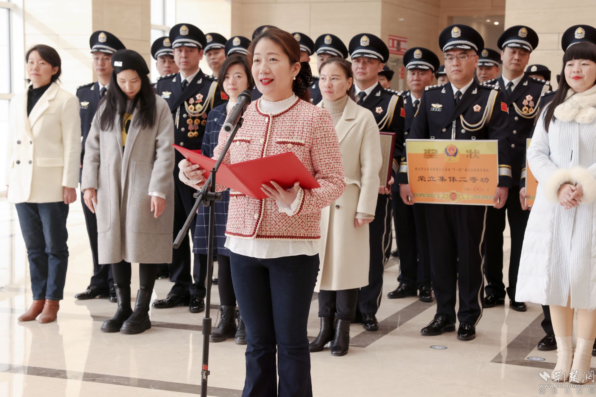 公安局黨委副書記、副局長牟波為榮記集體二等功代表頒獎。通訊員 供圖