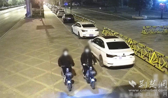 鳳凰派出所隨即聯(lián)合市局刑偵支隊依托“情指勤輿”一體化實戰(zhàn)化運行機制,根據基站自動報警時段,重點對其附近路段的公共視頻資料進行研判,果然發(fā)現(xiàn)了疑點:由于報警時間段為凌晨,周邊道路幾乎沒有人,所以兩名騎著共享自行車的戴口罩男子引起了民警的注意。