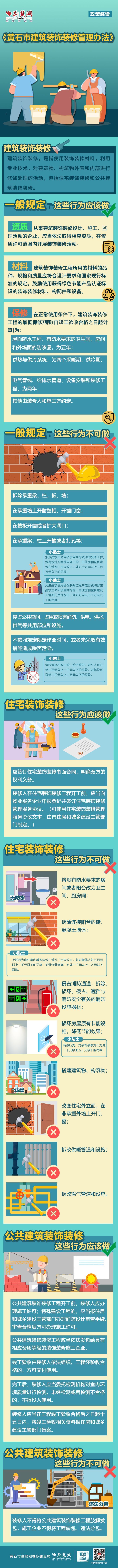 荊楚網(wǎng)(湖北日?qǐng)?bào)網(wǎng))訊(記者阮瓊 劉璐 通訊員李迪)今年5月1日起,《黃石市建筑裝飾裝修管理辦法》正式施行。根據(jù)《辦法》,黃石裝飾裝修應(yīng)該注意什么,具體有哪些是禁止行為?一圖帶您全了解。
