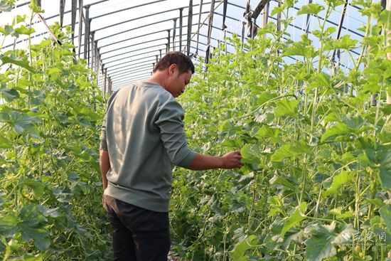 “眼看著天氣熱起來了,草莓大量上市的時候已經(jīng)過去了,現(xiàn)在要‘閉棚子’,馬上5月底甜瓜就要上市了?!鞭r(nóng)場主童衛(wèi)國介紹。